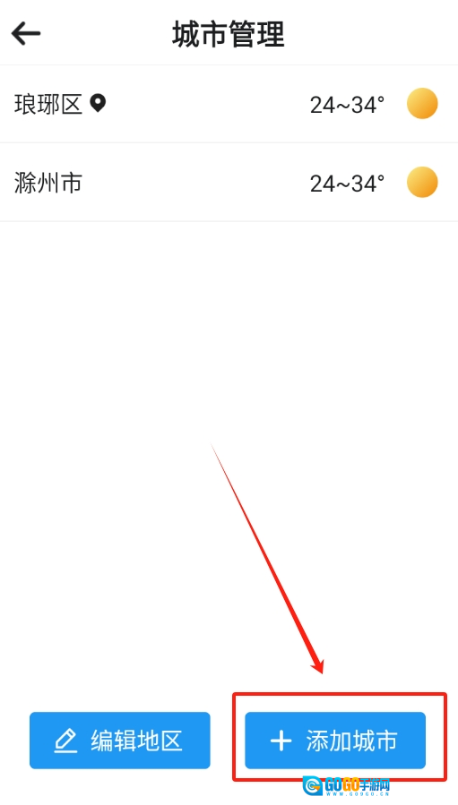 2、在弹出的菜单里选择"添加城市"这个选项,准备输入你想关注的地方。