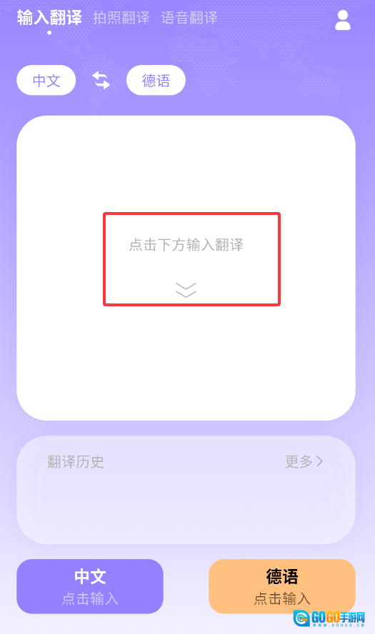 1、打开后,在文本输入框直接键入需要翻译的中文/德文内容,系统将实时显示翻译结果。