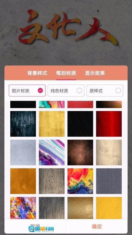 6、提供丰富的笔画材质,有图片、纯色两种材质分类,图片材质展示了不同图案的材质模板;