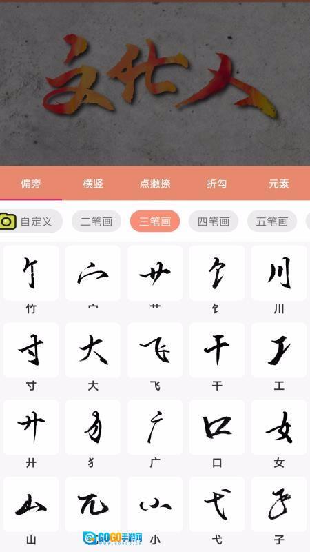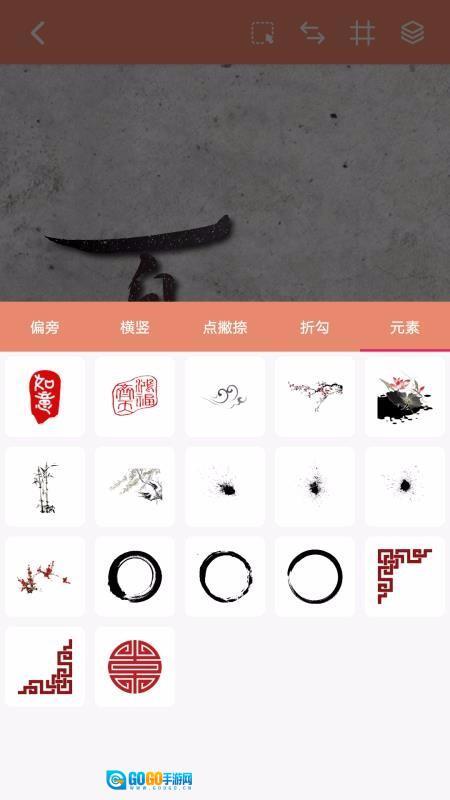 书法笔划造字是一款趣味书法造字游戏,可以使用不同的偏旁部首来创作新的汉字,还能选择不同的笔画材质、背景样式等;这款应用非常有趣,用户能创作出非常个性化的文字内容,展示出特色效果,作品的创作内容可以是自己的座右铭、可以是自己的名字,还可以是某个句子或诗歌等,只要将自己想要的内容编辑就能创作出来;它设计了自定义模式的作品设计元素,能通过拍照功能拍摄自己在白纸上描绘的内容,利用强大的抠图功能将内容抠出来,直接在该内容上进行编辑设计,获得不一样的个性化编辑效果,完成编辑后还能将自己的作品保存,保存后还可以将自己的作品分享或打印出来。
