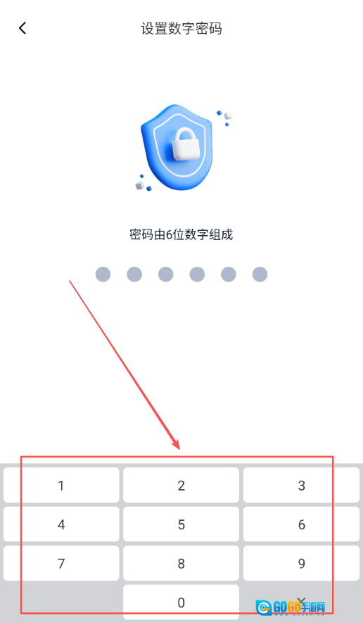 4、进入密码设置环节后,按照界面提示在指定输入区域输入六位数字作为加密密码,输入完成后即可完成应用加密的密码设置操作。