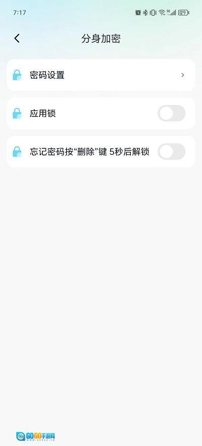 3、进入应用加密设置界面后,在界面中找到密码设置的功能选项,点击该选项进入密码设置环节,准备设置应用加密所需的密码。