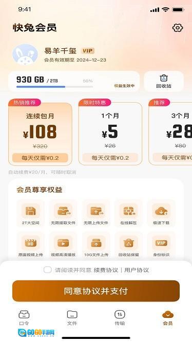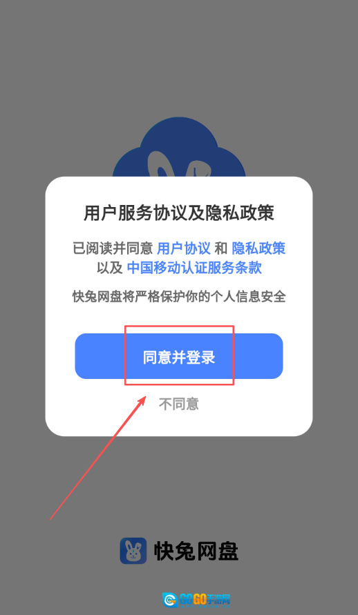 1、首次打开快兔网盘,界面会弹出软件协议窗口,仔细阅读协议条款内容后点击同意,才能进入软件主操作界面。