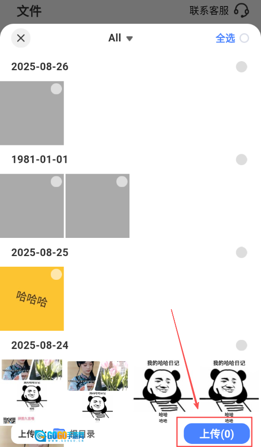 4、在对应文件类型的列表中,找到并选择需要上传的文件,确认所选文件无误后,点击页面上的上传按钮,开始文件上传。