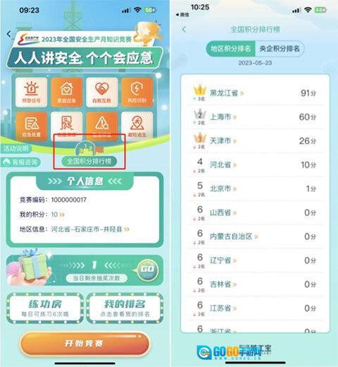 点击“全国积分排行榜”,即可查看地区或央企的整体排名情况。