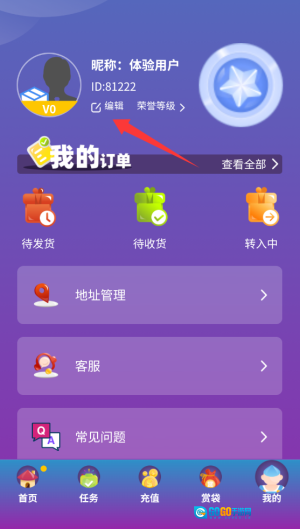 1、进入特维潮玩后,点击底部导航栏"我的"选项,进入个人中心页面。