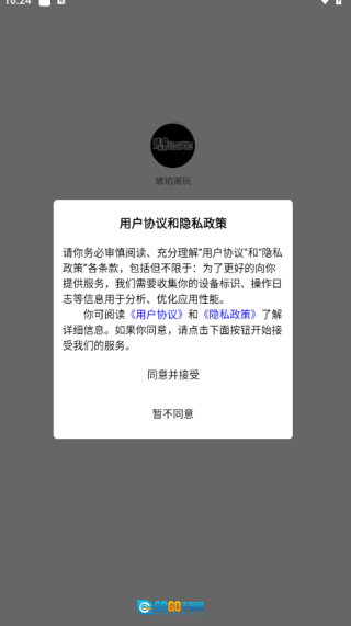 1、打开软件,会看到隐私政策页面,点击下方的同意并接受。