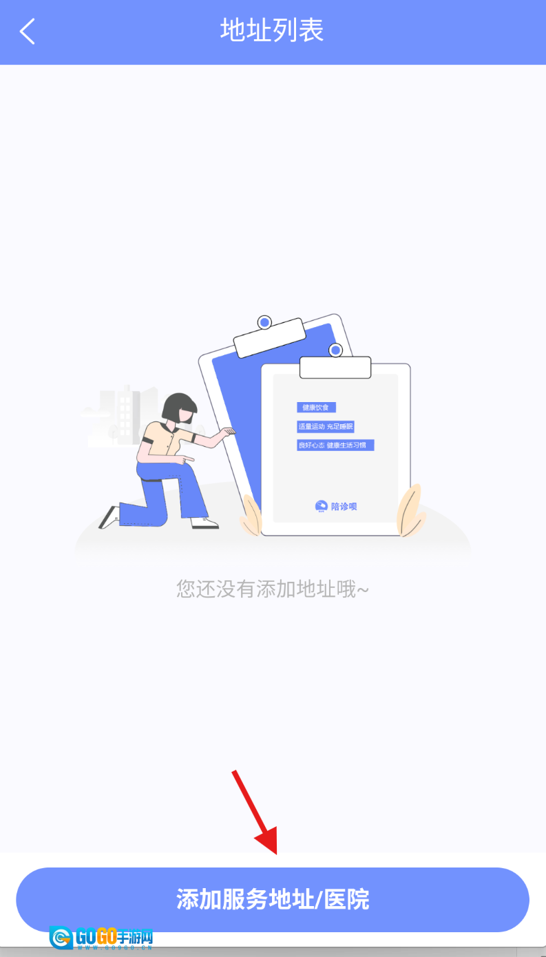 3、在地址管理界面中,找到 “添加服务地址 / 医院” 的选项并点击,进入信息填写页面。
