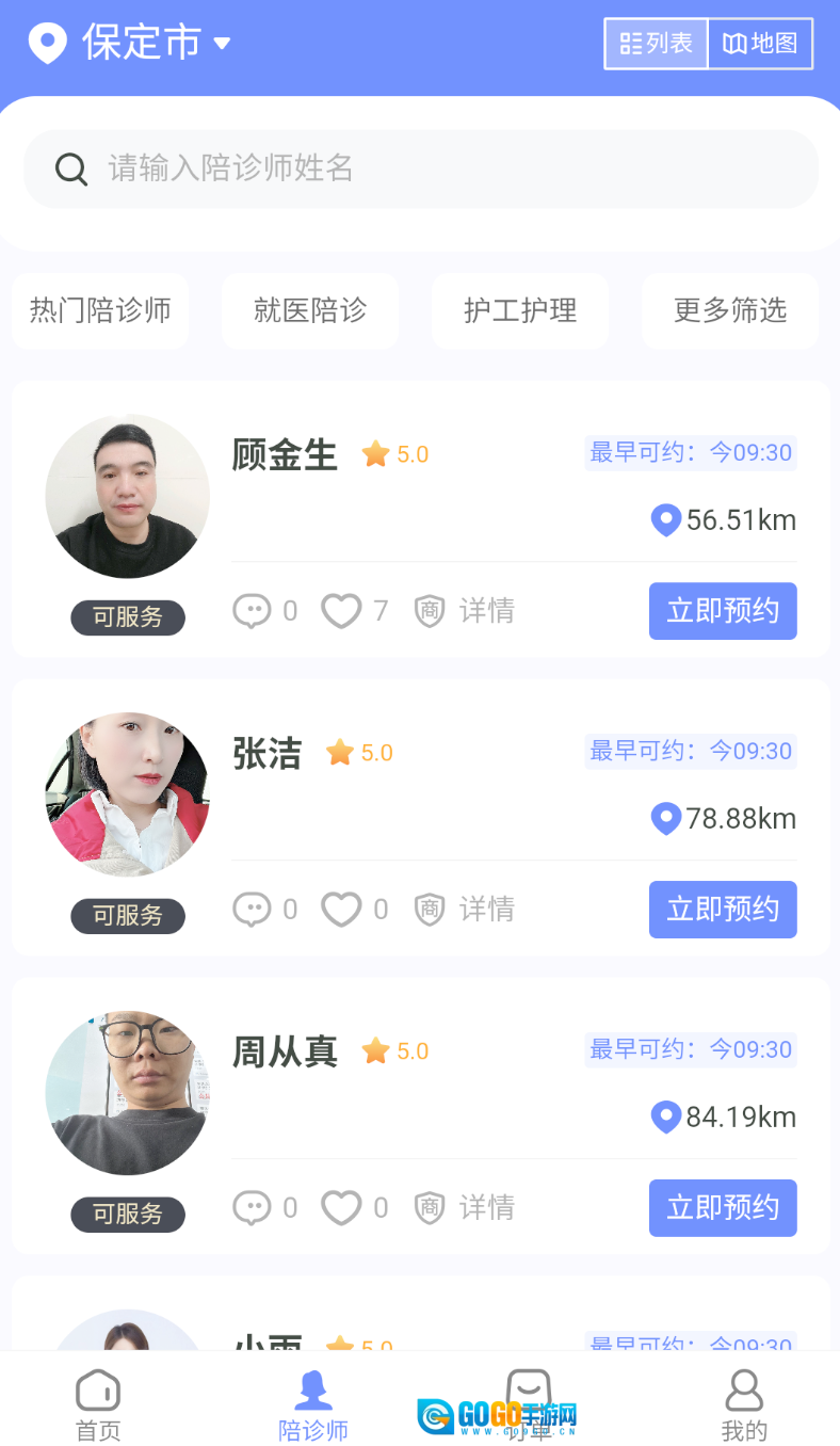 1、查找陪诊师:打开陪诊呗,浏览全国各城市的陪诊师信息,根据所在城市筛选当地的陪诊资源。