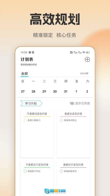 1、高效备考计划制定科学:输入目标分数和具体考试日期,系统自动生成每日详细学习任务清单计划。