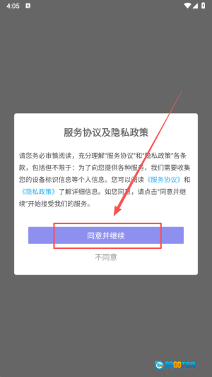 1、点击“同意”按钮,以便顺利进入应用程序,开始享受个性化的功能与服务。
