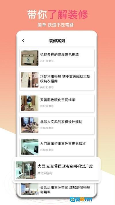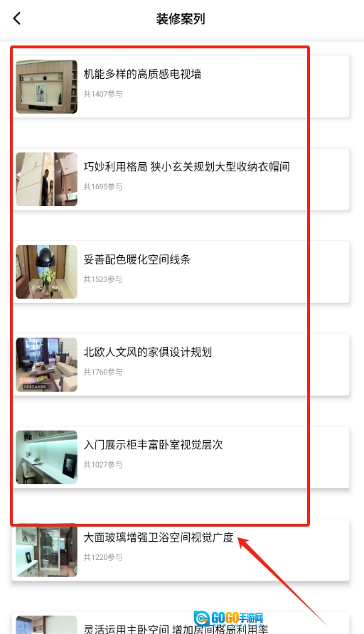 2、在学习页面的众多装修案例中,浏览找到感兴趣的案例,点击进入该案例的详细学习界面。