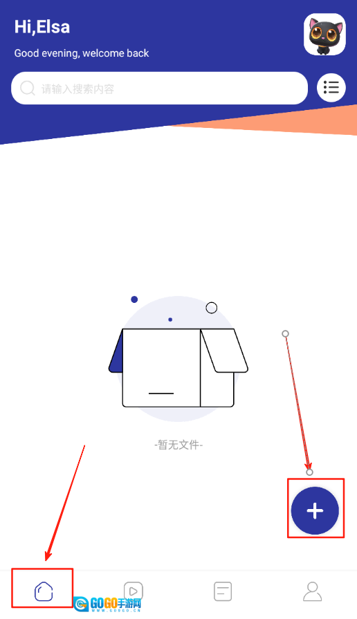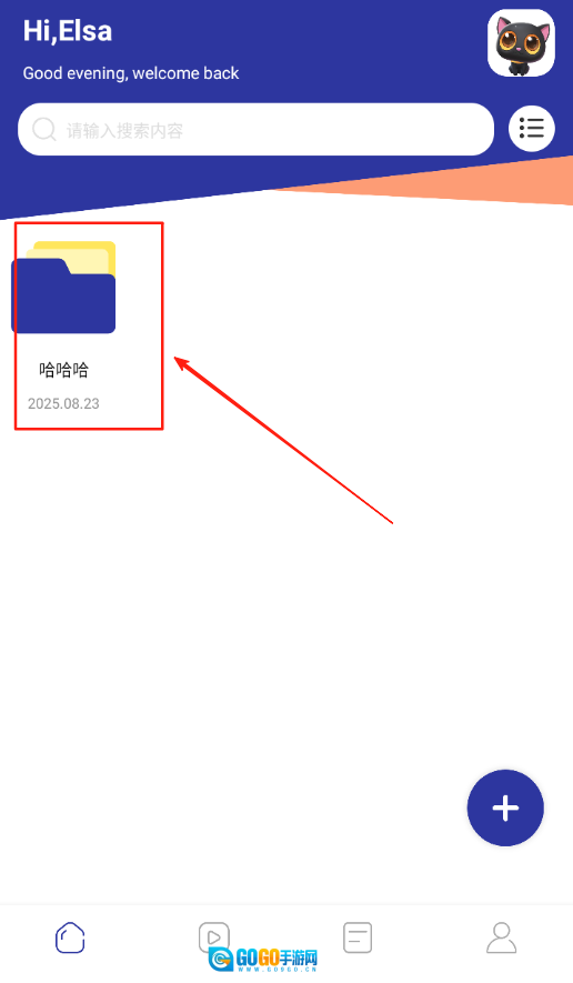1、打开软件进入首页,在界面中找到加号按钮,点击该按钮准备添加新的文件夹。