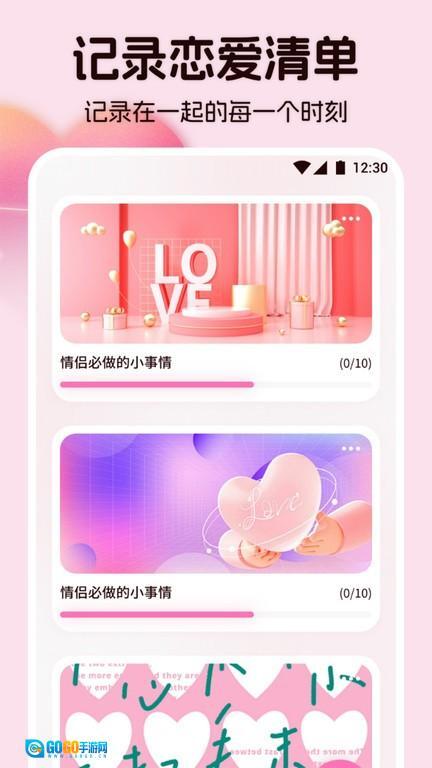3、设有恋爱清单板块,可计划想和对方一起完成的事,见证爱情里程碑,让恋爱更有仪式感。