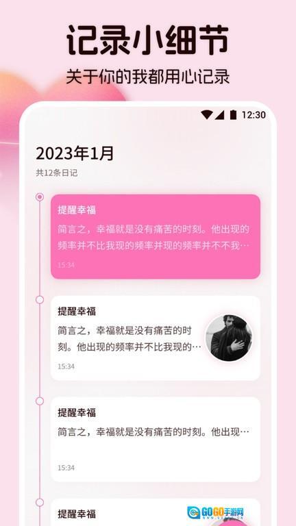 2、提供恋爱日记功能,可用图片和文字记录幸福点滴,把彼此间的美好回忆一一留存下来。