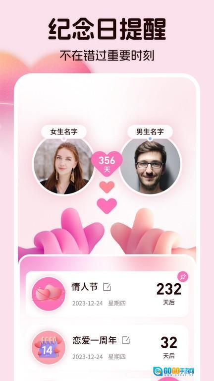 3、设置纪念日在相关功能中输入日期和名称,软件会自动提醒,避免错过重要的日子。