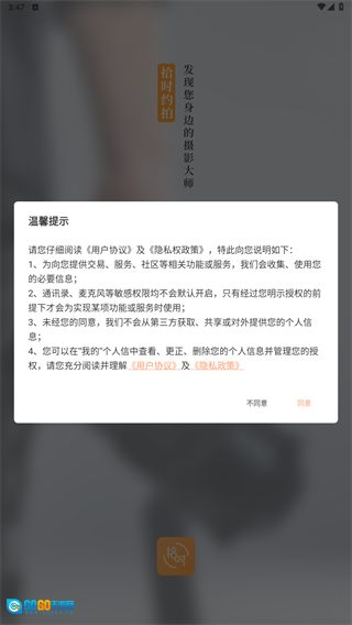 2、阅读用户使用相关协议与政策后,点击同意。
