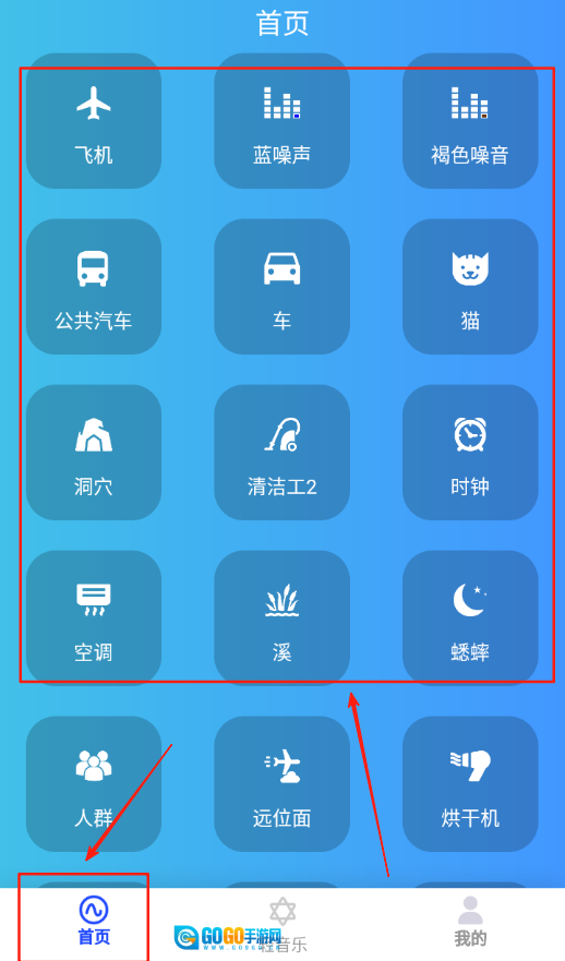 3、成功登录后回到软件首页,首页展示多种类型的白噪音,可根据喜好选择多个白噪音同时播放营造舒适氛围。