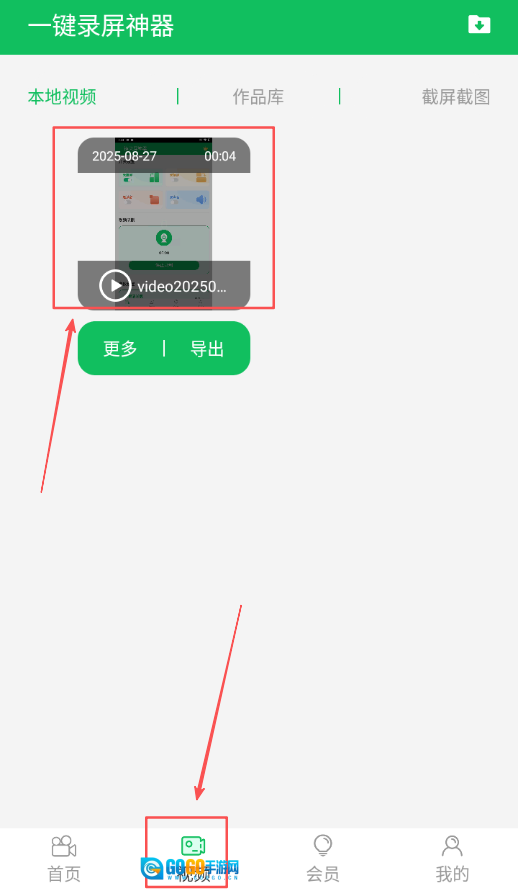 4、录制完成后停止录屏,在软件内找到视频页面入口并点击进入,在视频页面中就能看到所有已保存的录屏视频文件。
