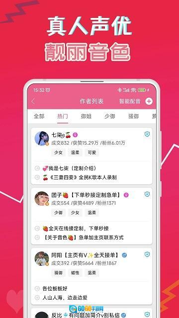 3、拥有声优陪玩功能,平台上有几千位声优在线提供陪玩服务,不管是专业向还是休闲向陪玩需求,都能得到满足。