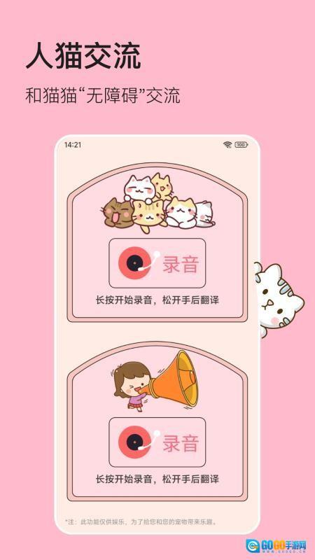 2、人猫交流专业模式100+种丰富互动场景选择,通过智能声音频率自动调节转换功能,让主人与猫咪建立更亲密的情感沟通关系。