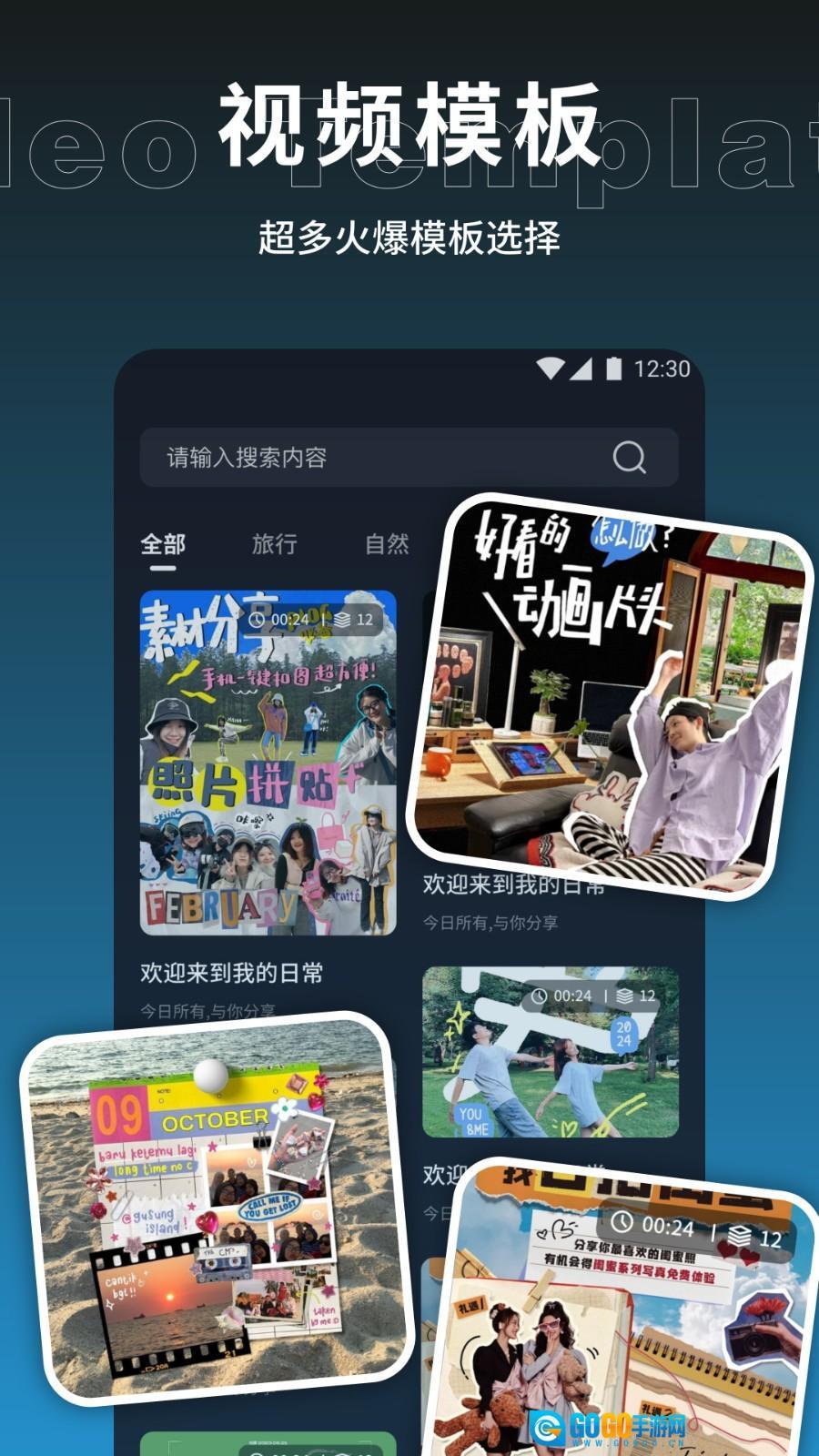 1、拥有海量视频模板素材,每日不断更新,涵盖亲子、节日、生活、旅行等多种风格,用户可一键搜索找到喜欢的模板,快速制作同款短视频。