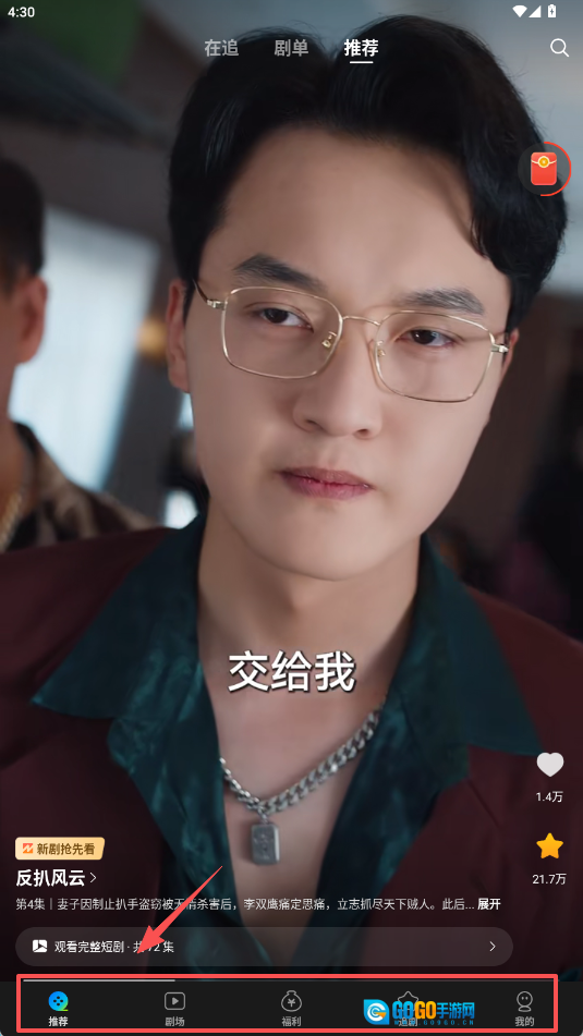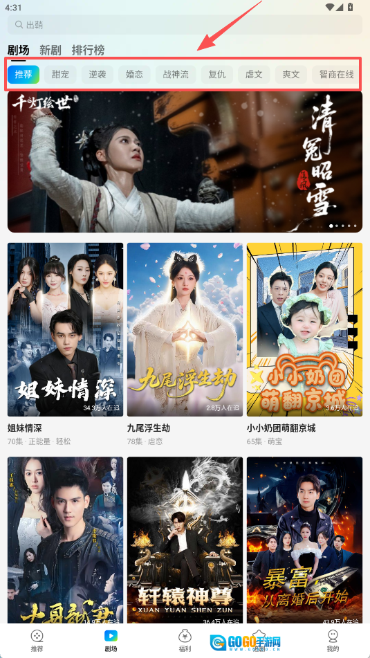 4、打开推荐页面,能看到分类标签和多部剧集,选推荐剧场等标签。