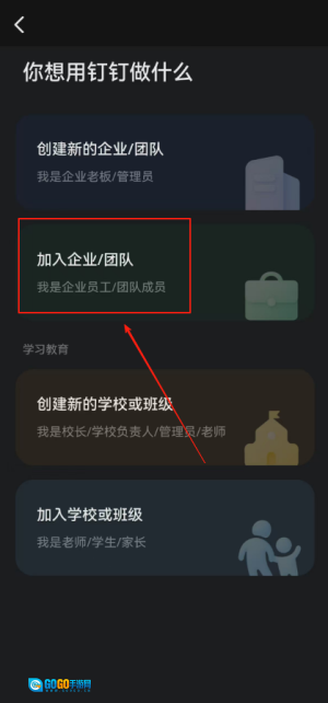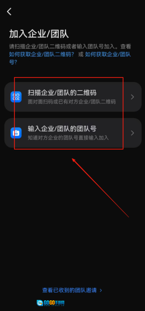 3、选取“加入企业/团队”,为您寻找想要加入的团队做好准备。
