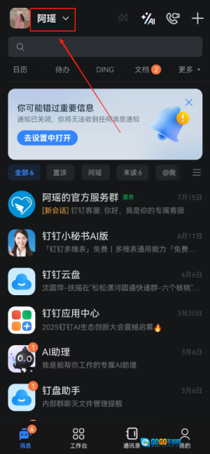 1、点击打开该应用进入消息页面,查看最新的工作消息通知