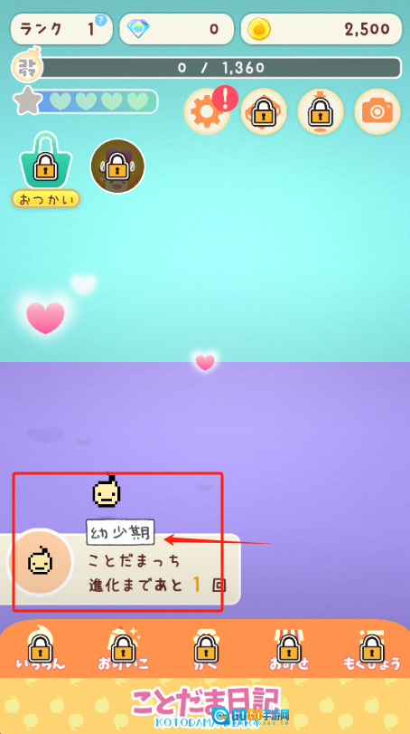 1、点击红框内的幼少期角色,查看它进化还需1次互动,爱心是亲密度的标识。