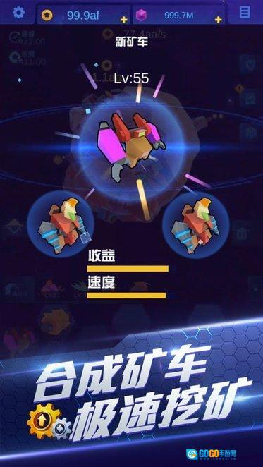 1、开启萌趣的宇宙探险之旅,在多彩星球上进行挖掘作业,卡通风格的星际场景搭配造型各异的矿车装备,共同营造出轻松愉快的挖矿氛围。
