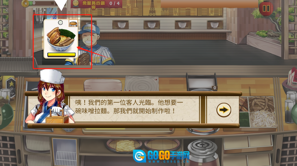 2、按照客人要求,点击味噌拉面图标开始制作。