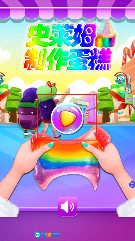 1、点击屏幕中央的播放按钮,即可开启史莱姆制作蛋糕的游戏,同时还能调节音量。