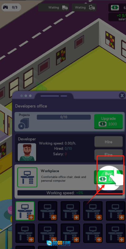 2、花25块购置新工位,攒满1000元升级办公室,以此提高员工的工作效率。