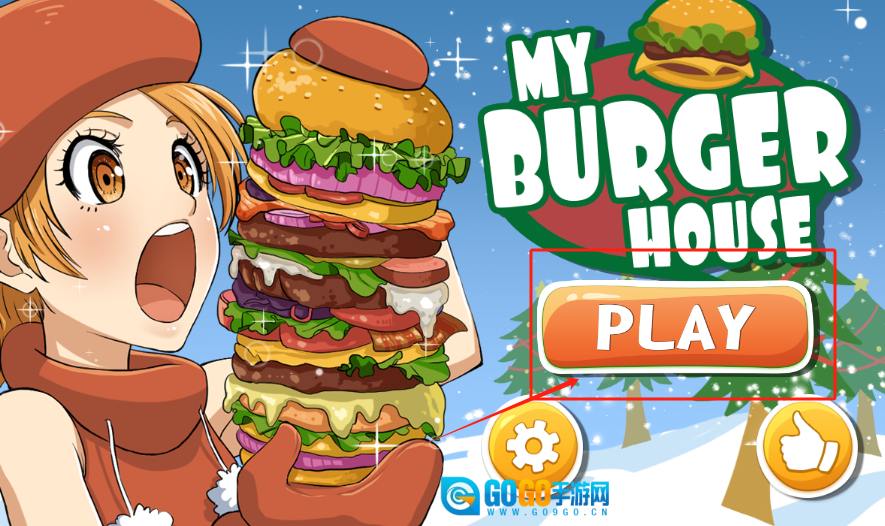 1、点击橙色的PLAY按钮,即可进入MY BURGER HOUSE汉堡店游戏开始游玩。