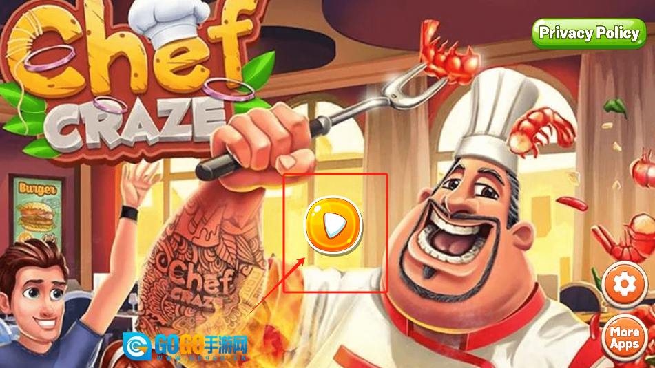 1、点击橙色的PLAY按钮即可开启游戏,那位带有纹身的大厨会指导你制作汉堡。