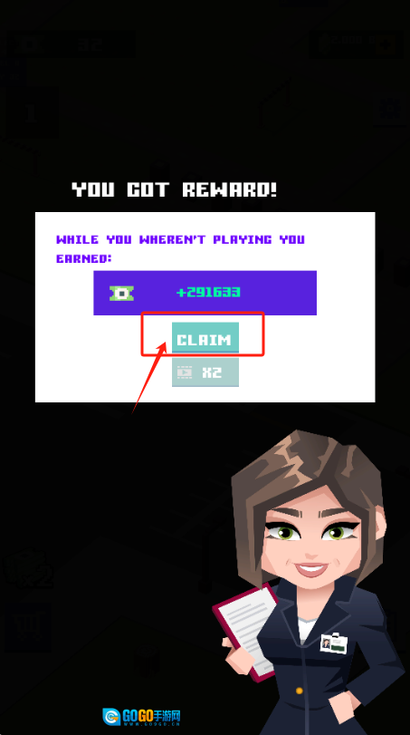 1、领取离线奖励时,点击红色的CLAIM按钮,就能直接获得29万金币。