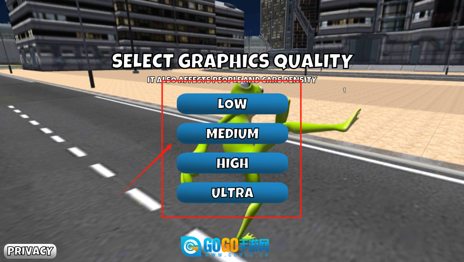 1、看到“SELECT GRAPHICS QUALITY”界面时,点击红框内的“ULTRA”选项以选择最高画质。