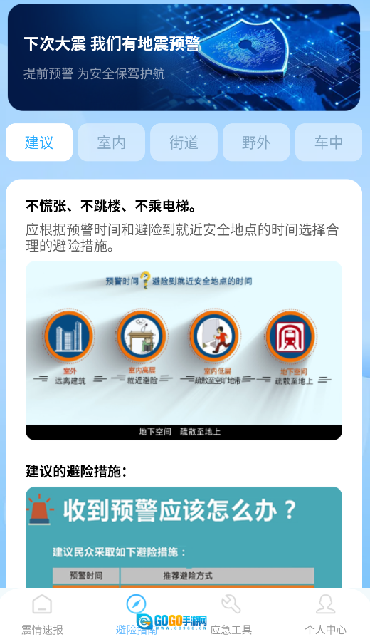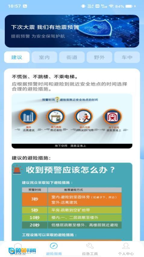 3、专业避险指导:由地震专家团队制定的避险方案,会依据不同建筑类型与场景,给出个性化的逃生建议。