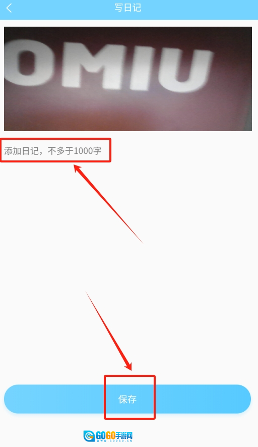 3、在空白区域填写想要记录的日记内容,等所有内容都编辑完成后,点击保存按钮,这样日记就成功保存好了。