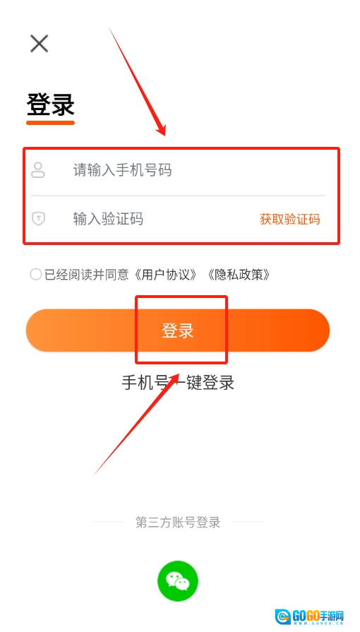2、进入登录页面后,输入你常用的手机号码,然后等待接收验证码短信,再把短信里收到的六位数字验证码准确输入到验证框中。