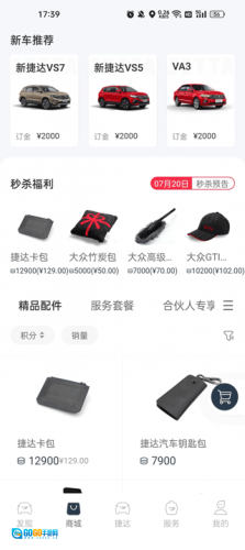1、发现板块里设置了粉丝福利和车载用品商城,用户能够购买包含捷达汽车在内的各类周边商品。