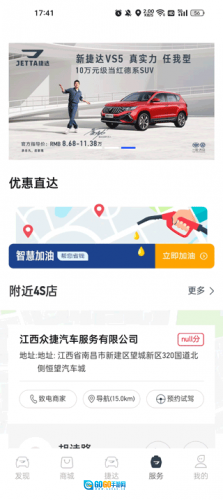 4、点击“服务”选项,可在此处查找附近的4S店,也能为自己的车辆安排维修保养服务。