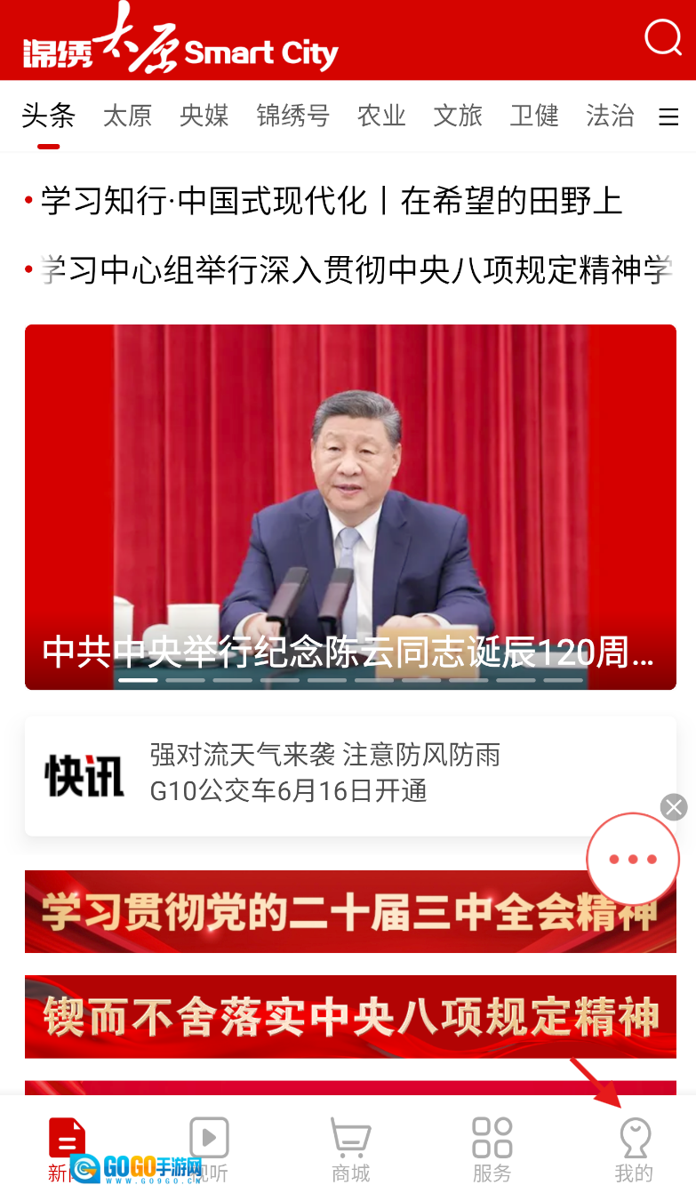 1、打开锦绣太原应用,在底部导航栏里找到并点击“我的”选项,进入个人中心页面。
