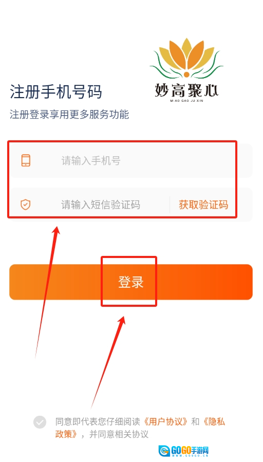 3、进入登录页面后,在指定区域准确填写个人手机号,接着查看手机短信,将获取到的验证码输入进去,即可完成登录操作。
