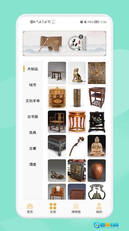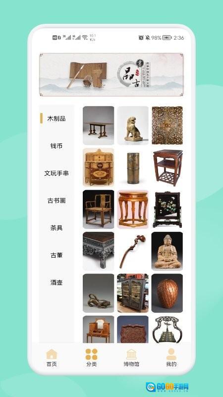 2、启动软件后进入首页,借助清晰直观的分类导航界面,选择并点击你感兴趣的古董类别,即可进入该类别的详情页面。