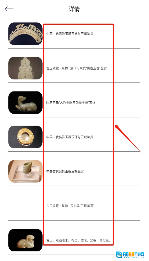 3、挑选感兴趣的古玉知识点击进入,就能详细查看与之相关的历史事件。