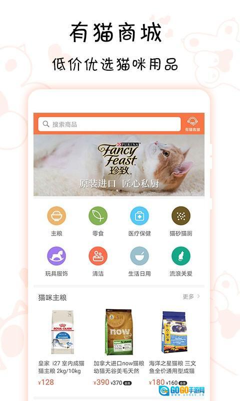 3、商城里商品种类丰富,价格也很实在,配套服务细致又周全,喵账和喵圈这两个功能能够切实增强用户养猫的生活体验。