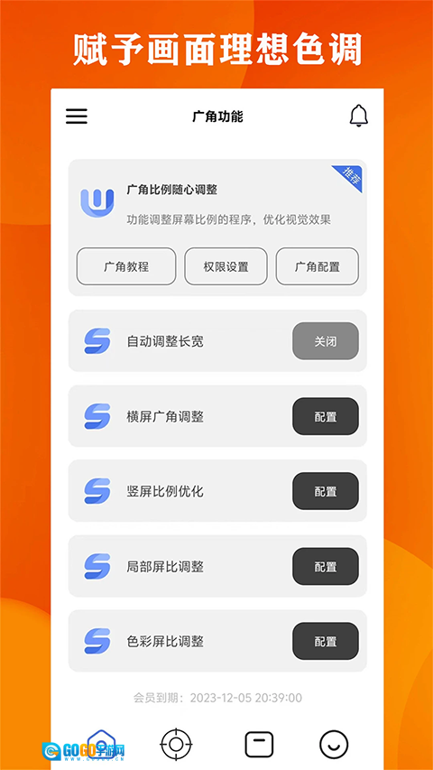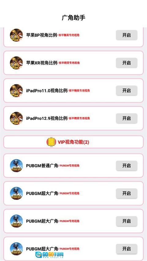1、直接打开软件,找到想要体验的广角类别,点击右侧的开启按钮。