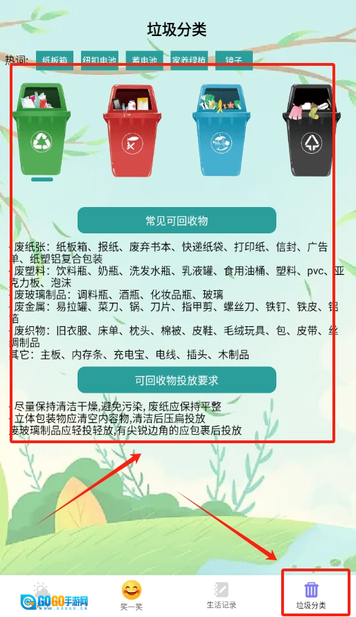 3、要是想了解垃圾该怎么分类,在软件里找到对应的功能区域,输入垃圾的名称,就能得到它的分类信息了。
